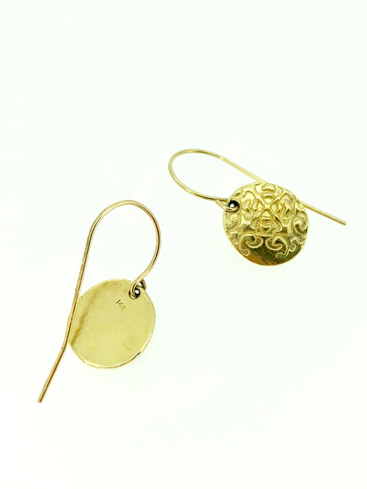 Antique Gold Hammered Medallion Earrings Nest Jewelry